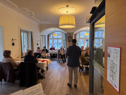 Am 24. Dezember 2025 am Mittag feierten wir mit unseren Bewohnenden und ihren Angehörigen ein festliches Weihnachtsfest. Die Küche verwöhnte uns mit einem köstlichen Menü: Als Vorspeise gab es Mango und Mozzarella auf einem Nüsslisalat. Es folgte eine zarte Entenbrust, serviert mit einer Orangen-Zimtsauce, begleitet von Wildreis und Wirz à la crème. Das Dessert war eine himmlische Rafaello-Crème.